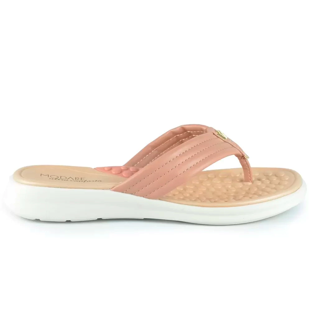Chinelo de dedo feminino massageador Modare Ultraconforto 7174.105. Confeccionado em material sintético de alta qualidade. Palmilha super macia. Solado de borracha antiderrapante. O modelo ainda conta com a tecnologia ReflexSense, tecnologia exclusiva da marca, com esferas em eva que massageiam os pés ao caminhar, ativando a circulação sanguínea e prolongando o conforto no dia a dia. Muito utilizado para aliviar as dores do exporão; artrite e artroze. E mais a palmilha oferece um suporte e uma elevação maior na parte interna de forma que promove um alinhamento do pé e por consequência de todo o membro inferior, que tem como objetivo corrigir e alinhar o desvio da pisada pronada.