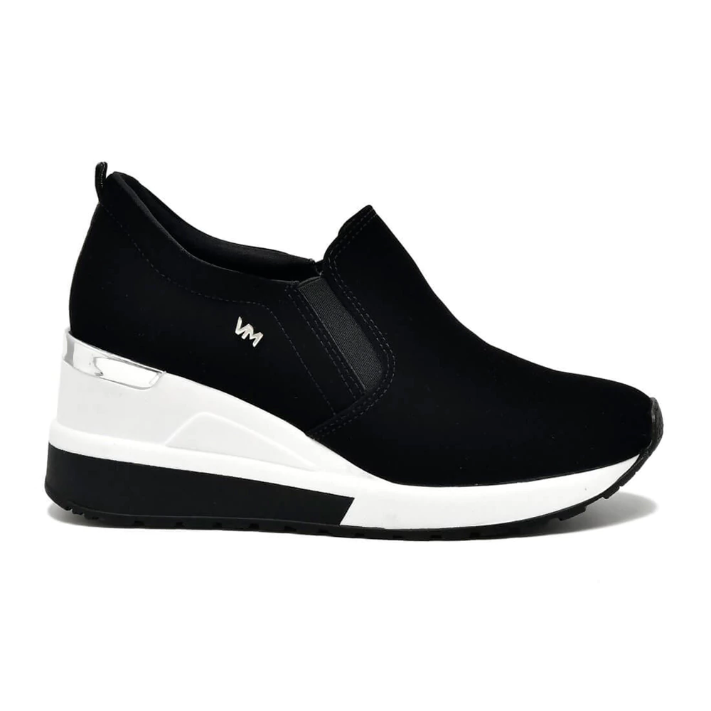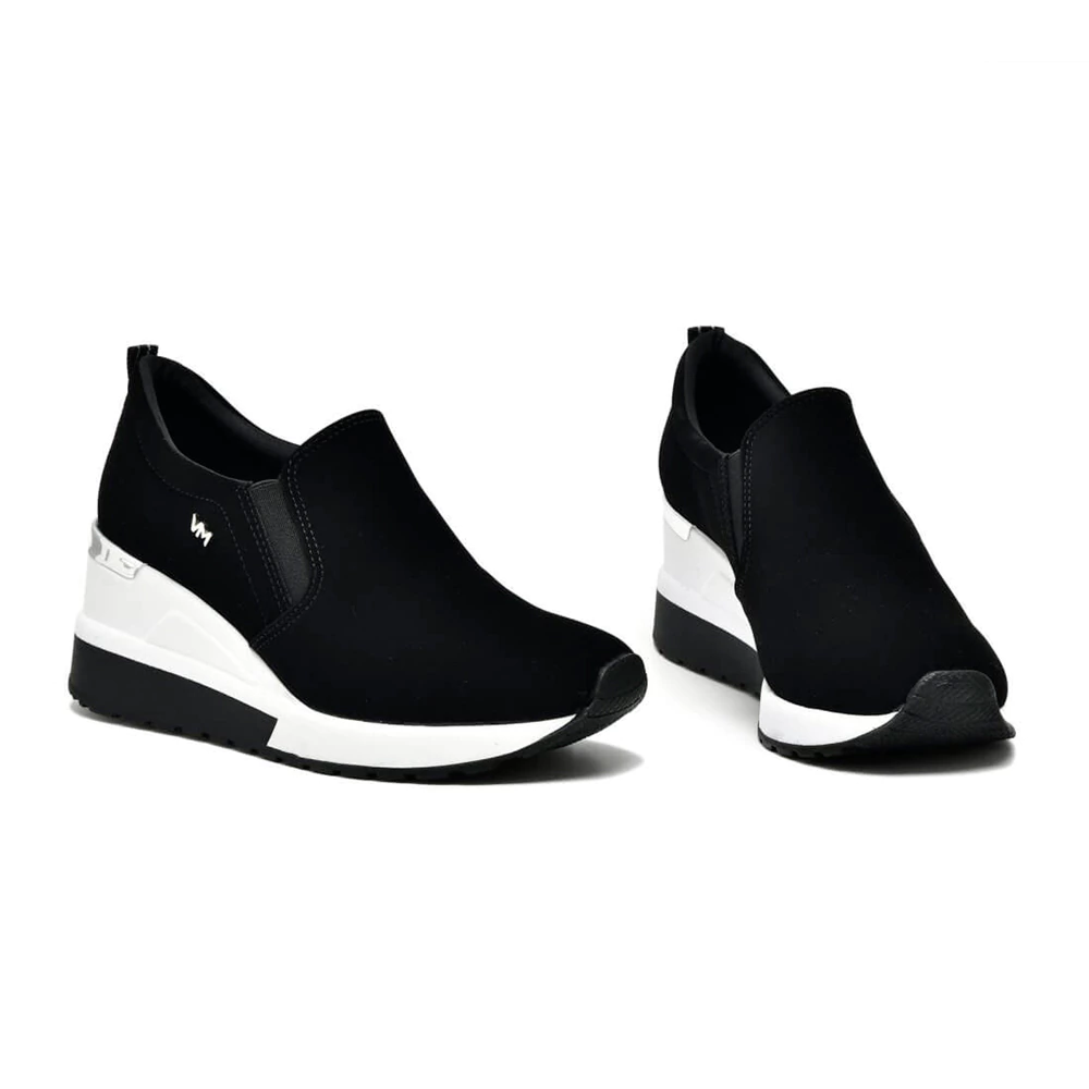 Tênis Slip On Anabela Feminino Via Marte 046-002-01, coleção primavera verão 2024/25. Ideal para compor um look com muito estilo e elegância. Confeccionado em material sintético de alta qualidade, modelos estilo slip on não possui cadarço, palmilha de espuma macia revestida em tecido. Solado PU antiderrapante com salto de 7 cm de altura.